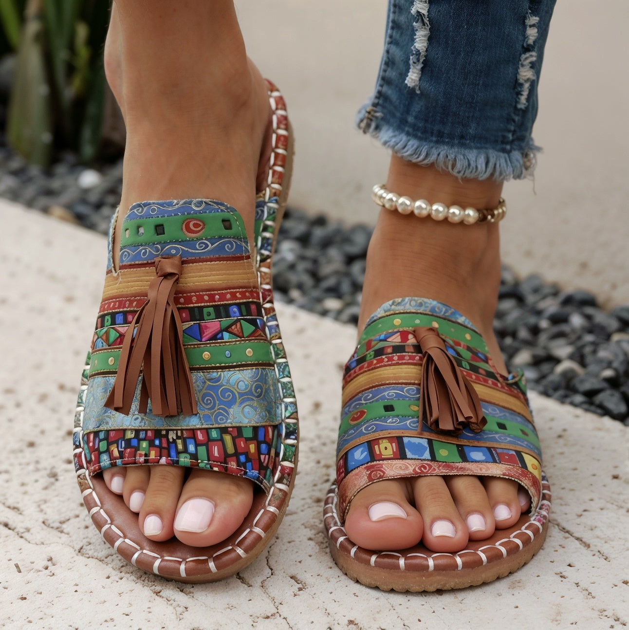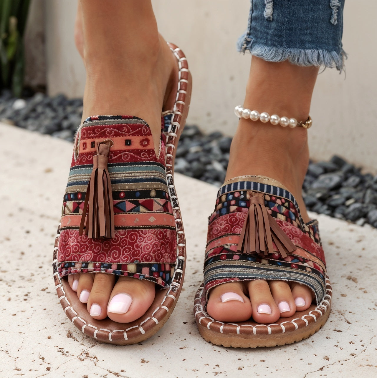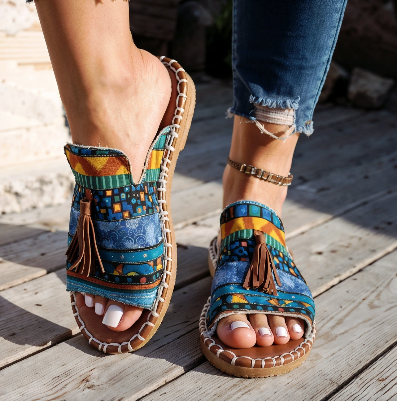 Barbara – Niezwykle Wygodne Ortopedyczne Wsuwane Sandały z Ozdobnym Chwościkiem
