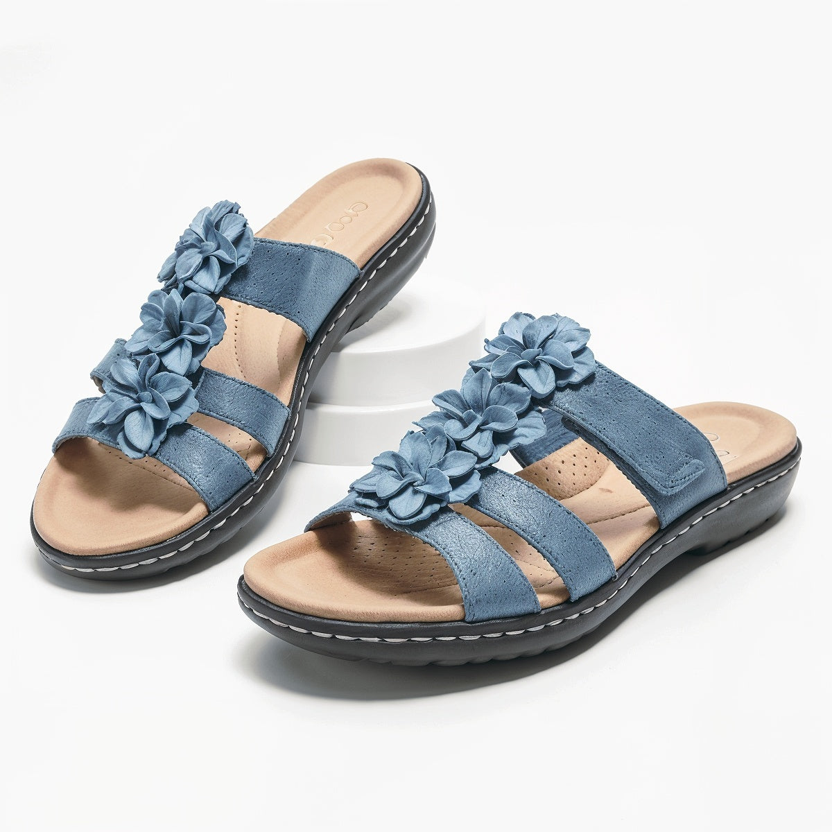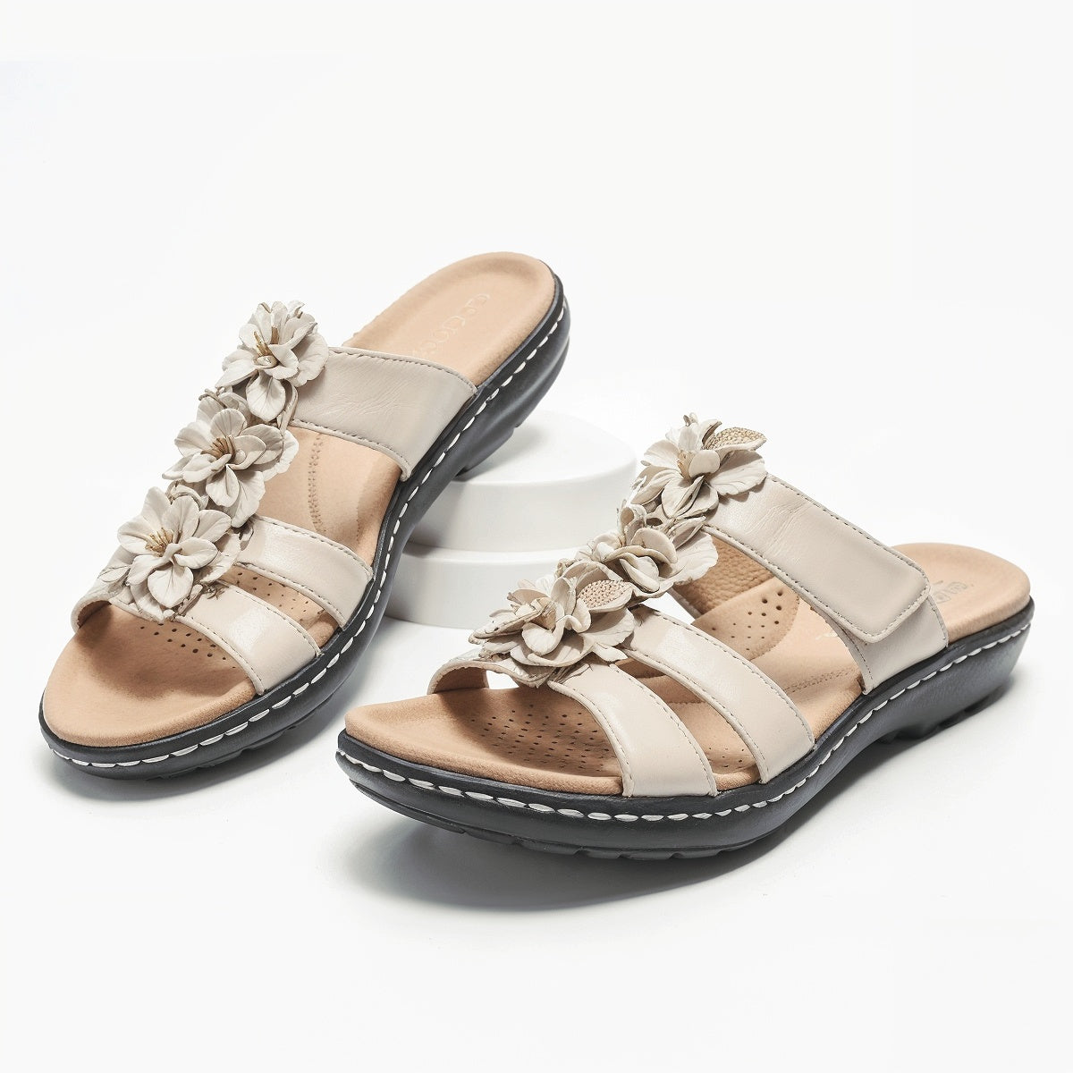Lucy – Niezwykle Wygodne Ortopedyczne Skórzane Klapki z Kwiatowym Akcentem