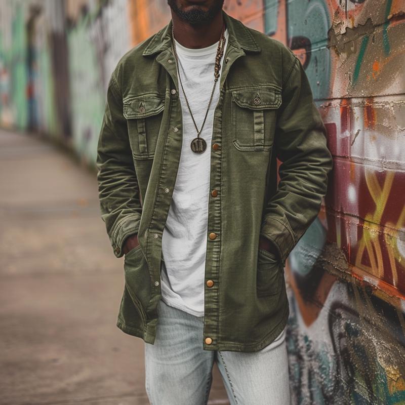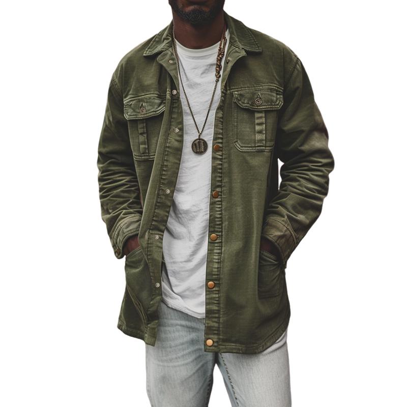 Męska Vintage Kordowa Prana Marynarka Robocza z Kołnierzem o Średniej Długości z Wieloma Kieszeniami 57083402M