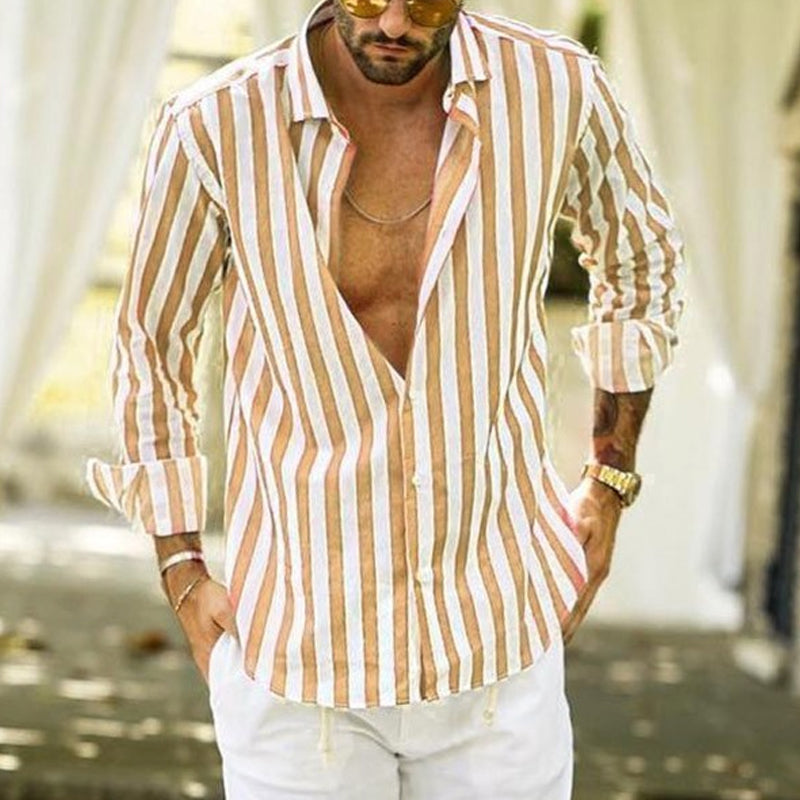 【24-godzinne wysyłki】Męska koszula w stylu Western z nadrukiem w paski na wakacje z długim rękawem 43560067X