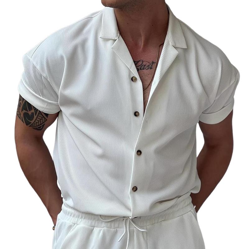 Męska koszula z satyny z plisowanym kołnierzykiem i krótkim rękawem MTA0317G0Z