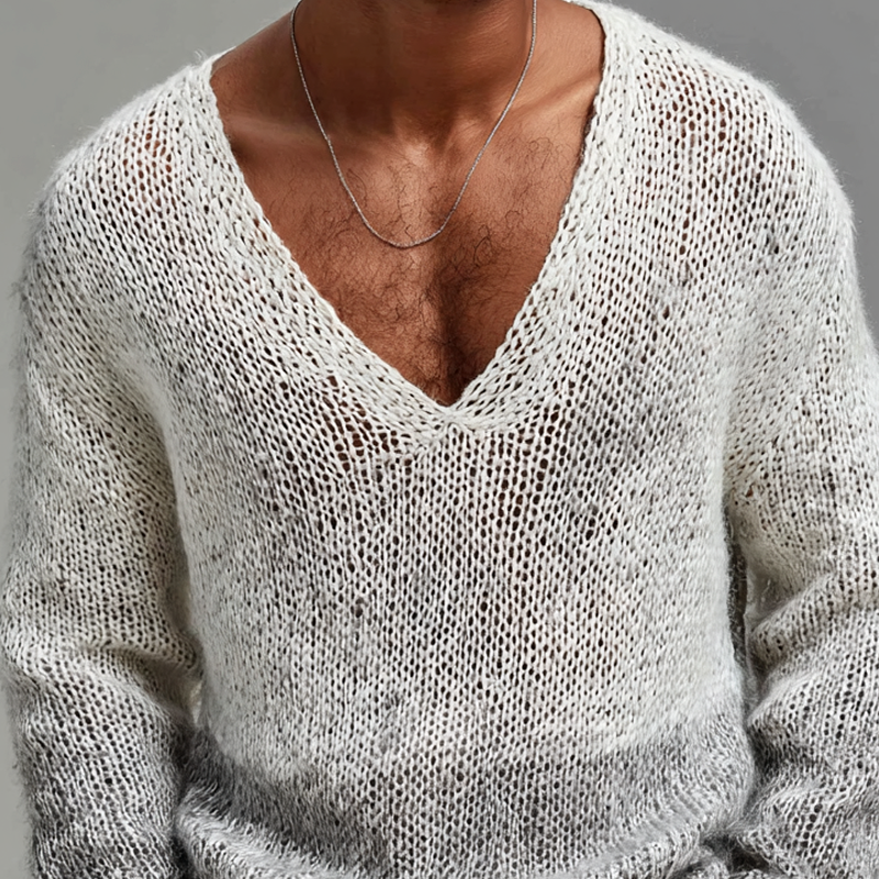 Ten męski sweter gradientowy z dekoltem w serek i długim rękawem łączy nowoczesny design kolorystyczny z komfortem, co czyni go wszechstronnym elementem na codzienne, podróżne i przejściowe stylizacje.