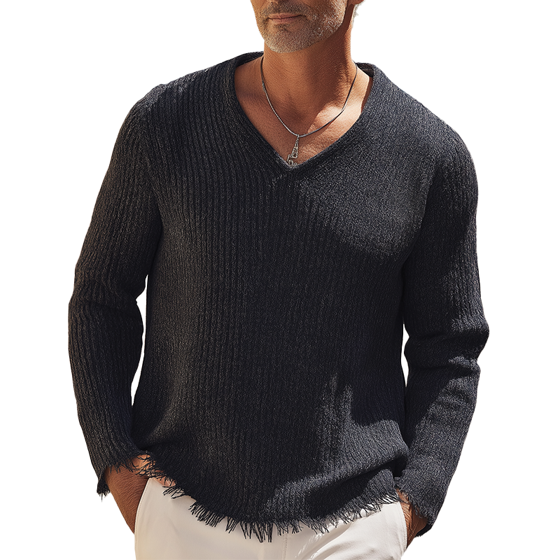 Męski sweter vintage z surowym wykończeniem w melanżowym kolorze MTA1367H6P