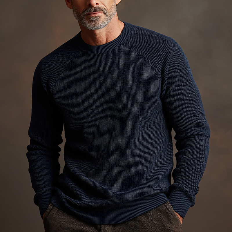 Męski Retro Casual Sweter z Okrągłym Dekoltem w Jednolitym Kolorze MTA1179H0TO