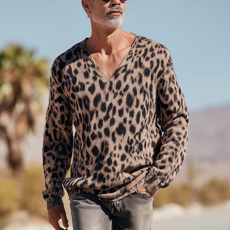 Męski Retro Casual Sweter w Kamuflażu z Okrągłym Dekoltem MTA2169H0TO