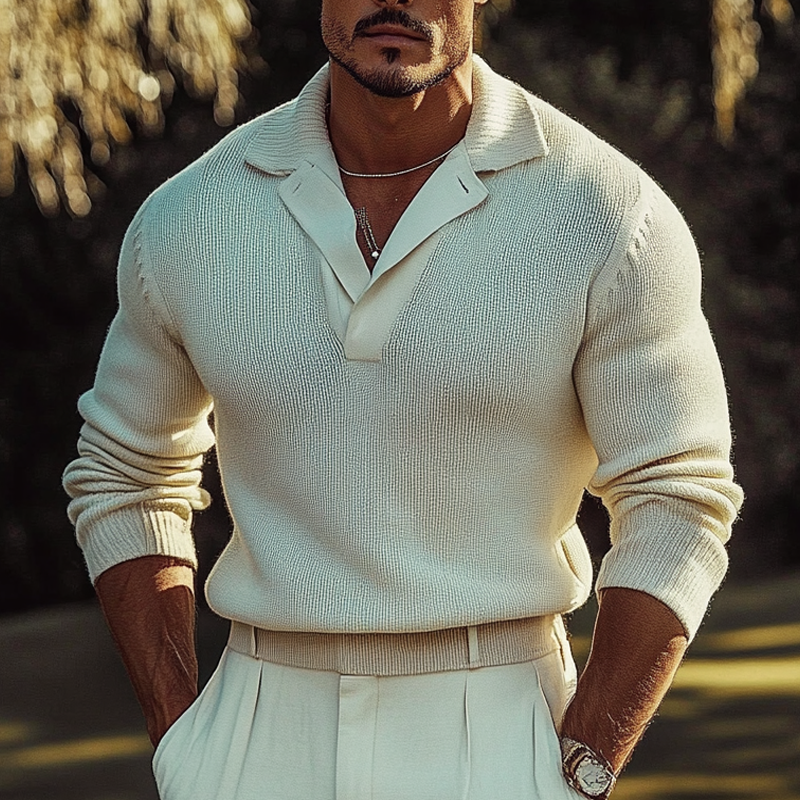 Męski Vintage Sweter z Stojącym Kołnierzem, Pulower z Skręconym Wzorem 48552196X