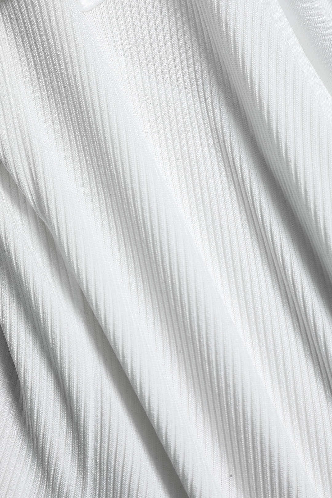 Materiał: Mieszanka 95% poliestru i 5% elastanu z włóknami mlecznymi i prążkowaniem dla gładkiego, teksturowanego wykończenia.